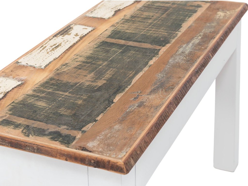 Dřevěná lavice dodá kreativní nádech každému obytnému prostoru. Sedák naší malé lavice je ideální pro obouvání bot v chodbě. Úzký sedák vypadá skvěle i v koupelně jako úložný prostor na ručníky, prádlo nebo jednoduše jako dekorativní prvek. Rustikální, originální a masivní. Díky svému antickému vzhledu, barevným povrchům a bílému rámu dodá lavice Perth fascinující nádech každému obytnému prostoru. Je vyrobena z recyklovaného dřeva. Barva sedáku se střídá mezi rustikální hnědou a barevnými posypy. Její jedinečný charakter umožňuje její kombinaci s nejrůznějším nábytkem, ať už dáváte přednost mixu stylů s moderním designovým nábytkem, venkovskému stylu nebo starožitnému nábytku v shabby-chic stylu. Podrobnosti:Tloušťka nohy: 5 cm Poznámka: Rustikální vzhled je záměrný! Bílé dřevěné povrchy jsou záměrně nerovnoměrně natřeny. Odštěpky, díry a nerovnosti jsou součástí designu a přispívají ke zvláštnímu starožitnému vzhledu. Nejedná se o vadu, ale o úmysl!