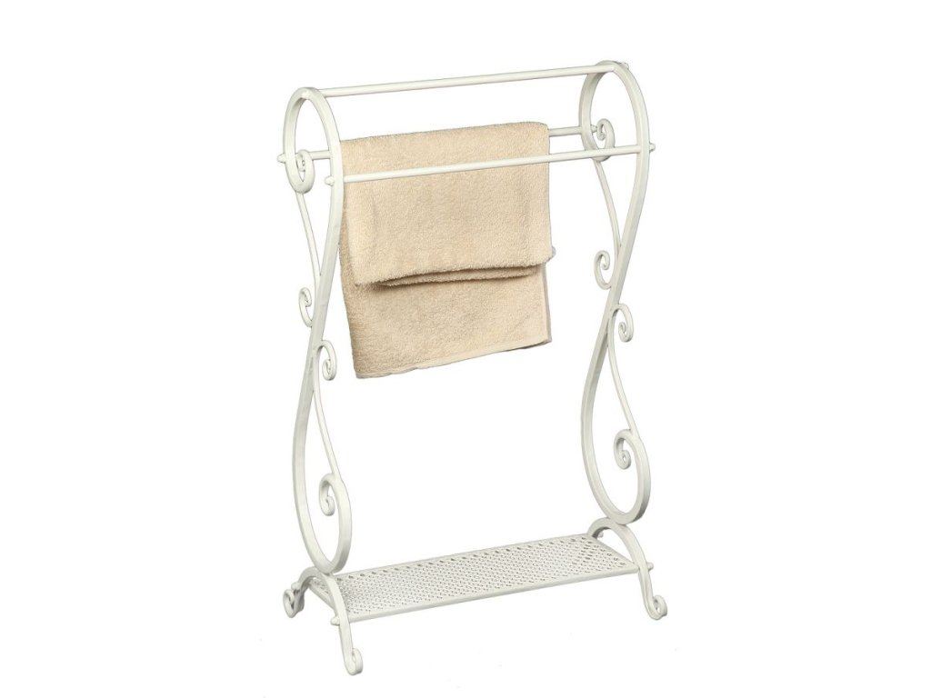 Je vyroben z kovaného železa a díky čtyřem krátkým nohám je robustní. Tři tyče poskytují dostatek prostoru pro zavěšení ručníků, zatímco tkaná kovová police ve spodní části nabízí ještě více úložného prostoru.