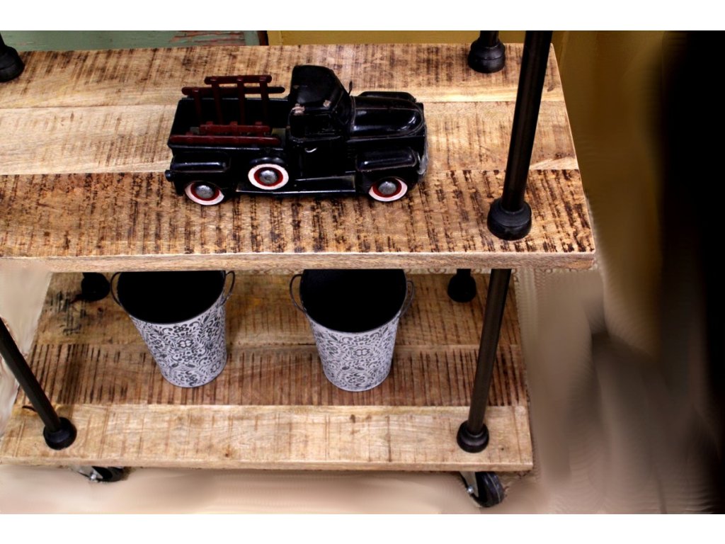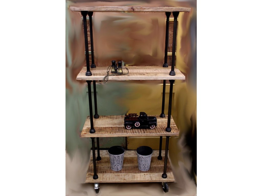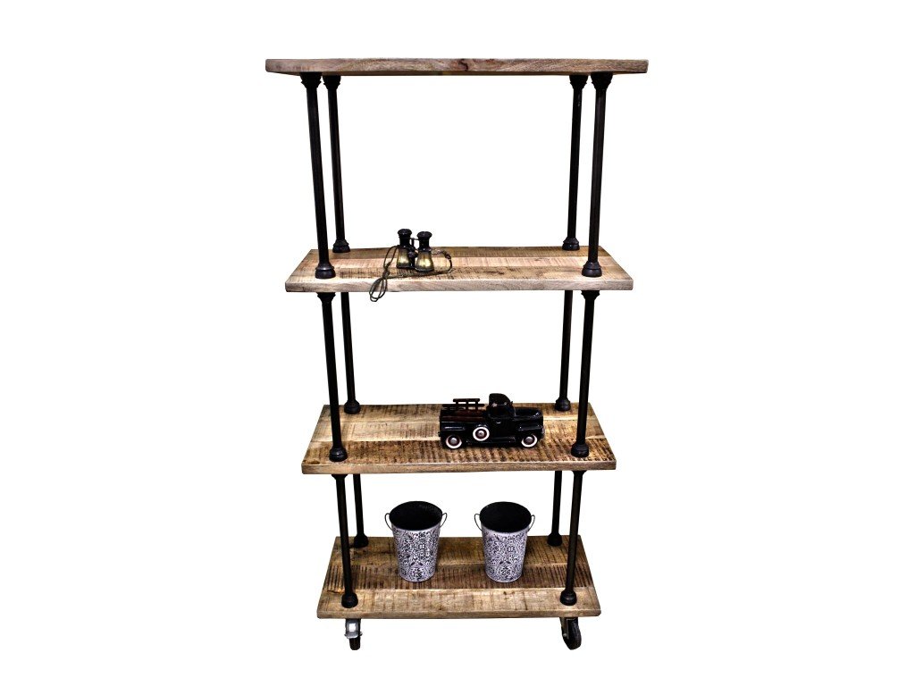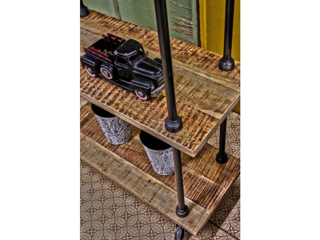 Industriální regál na kolečkách z mangového dřeva a oceli