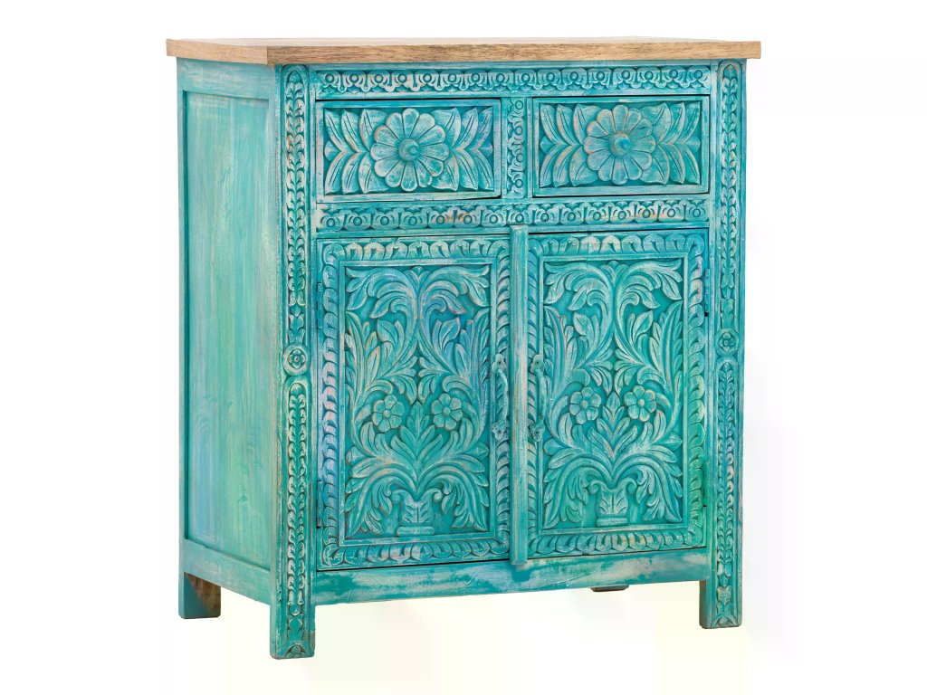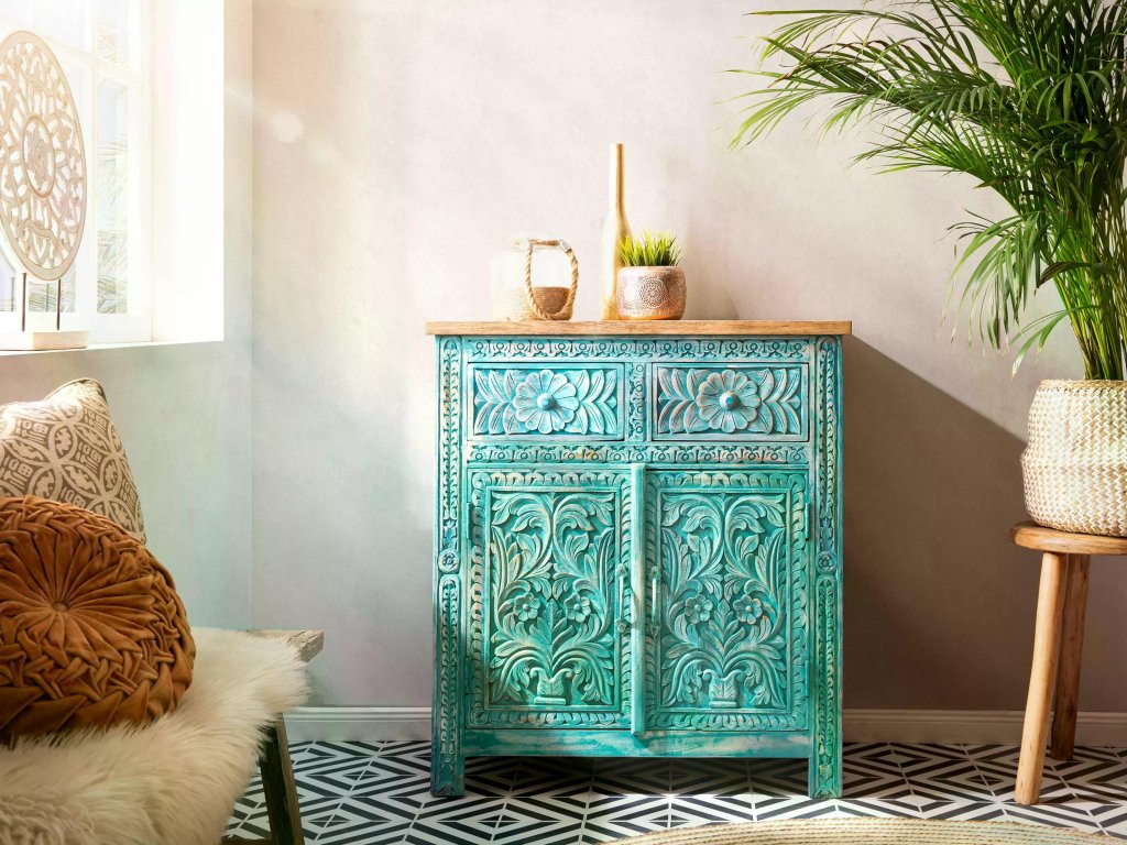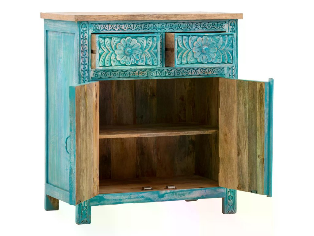 Přineste si domů StředomoříS touto koupelnovou sadou z masivního mangového dřeva si do svého domova vnesete nejen kvalitu, ale také pocit léta, slunce a moře. Objevte ji hned teď, zkombinujte ji a proměňte svou koupelnu v místo, kde budete rádi trávit čas. Masivní dřevo, do kterého se zamilujeteVšechny kusy z této řady jsou vyrobeny z masivního mangového dřeva . Povrch je opatřen matným lakem, který nejenže vypadá elegantně, ale také chrání dřevo před vlhkostí a prachem. Jemné, vyřezávané detaily dělají z každého kusu skutečný poutač – jedinečný a plný charakteru. Úložný prostor se setkává se stylemDíky dvěma dvířkům, praktické polici a dvěma prostorným zásuvkám nabízí příborník Santa Cruz dostatek prostoru: Uložte si boty v chodbě , nádobí v jídelně, dokumenty v kanceláři nebo oblečení v ložnici – vše zde má své místo. A to vše v kompaktním formátu 80x90x45 cm – ideální do menších místností nebo jako malý příborník .