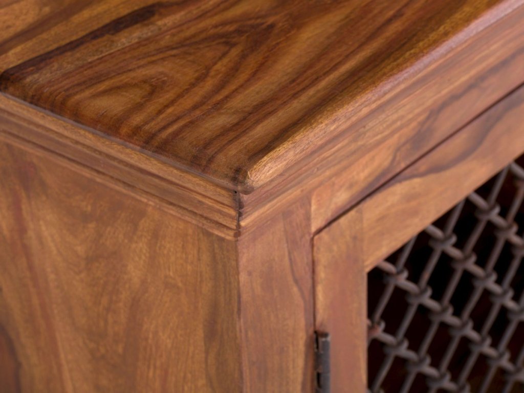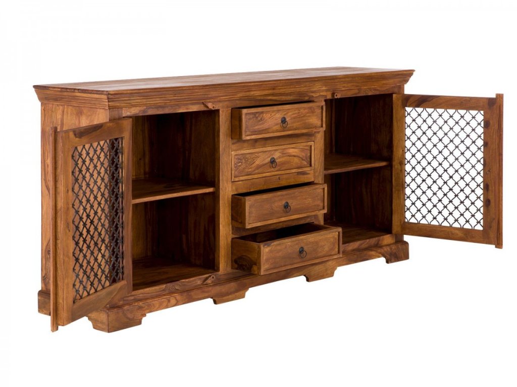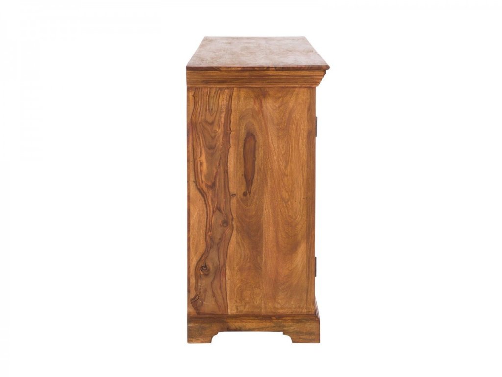Unikátní ručně vyrobená komoda z růžového dřeva tzv. indického palisandru. Obzvláště výrazná kresba dřeva na povrchu je leštěna a voskována. Díky tomu vyniknou různé přírodní hnědé tóny, které propůjčují tomuto nábytku nezaměnitelný design. Unikátní kus z malé série dovezený z Indie. Rozměry: š180 x v90 x h45 cm | |
