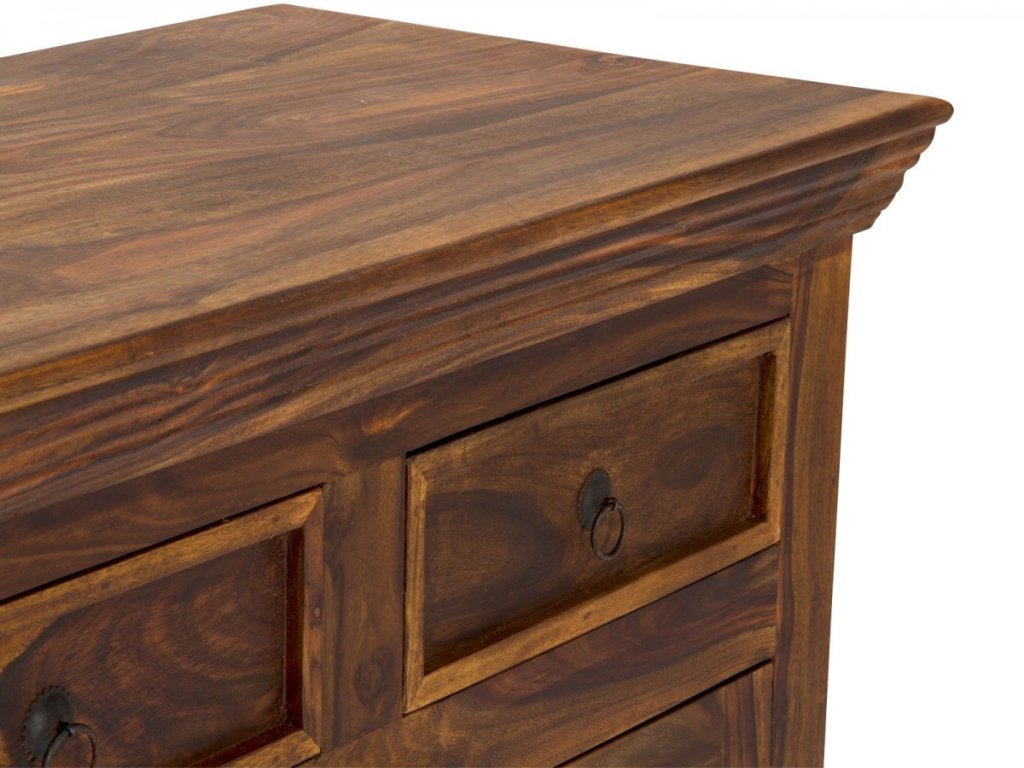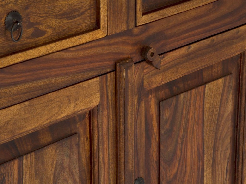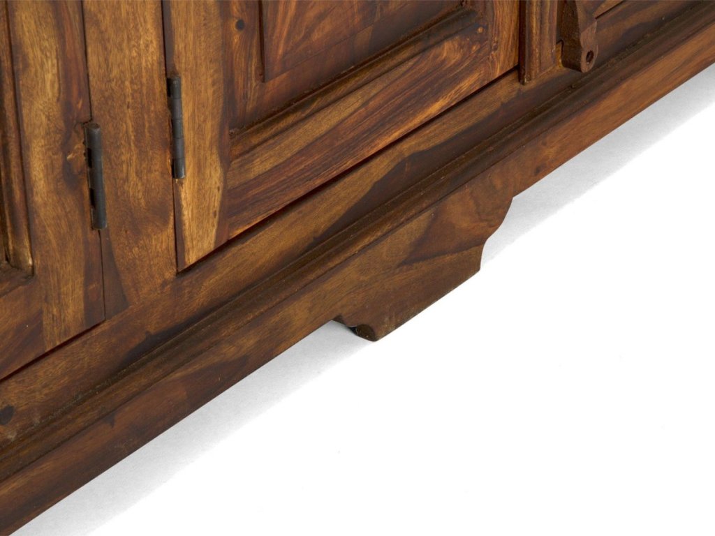 Unikátní ručně vyrobená komoda z růžového dřeva tzv. indického palisandru. Obzvláště výrazná kresba dřeva na povrchu je leštěna a voskována. Díky tomu vyniknou různé přírodní hnědé tóny, které propůjčují tomuto nábytku nezaměnitelný design. Unikátní kus z malé série dovezený z Indie. Rozměry: 180 x 90 x 45 cm | |