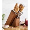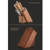 Uložení až 5 nožů, 1 brousku a nůžek na maso Vyroben z akáciového dřeva Na spodní straně má "silikonové nožičky" Otvory na nože mají tvar, který pojme všechny tvary čepelí Rozměry: v25.5 cm * š20.2 cm * 16.8 * 13 cm Hmotnost: 1.7kg