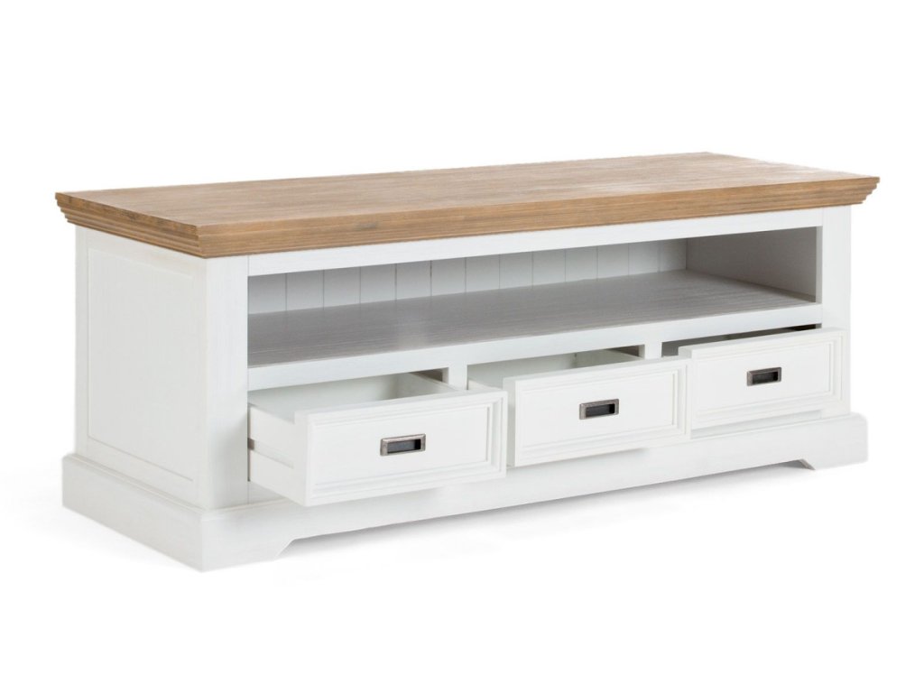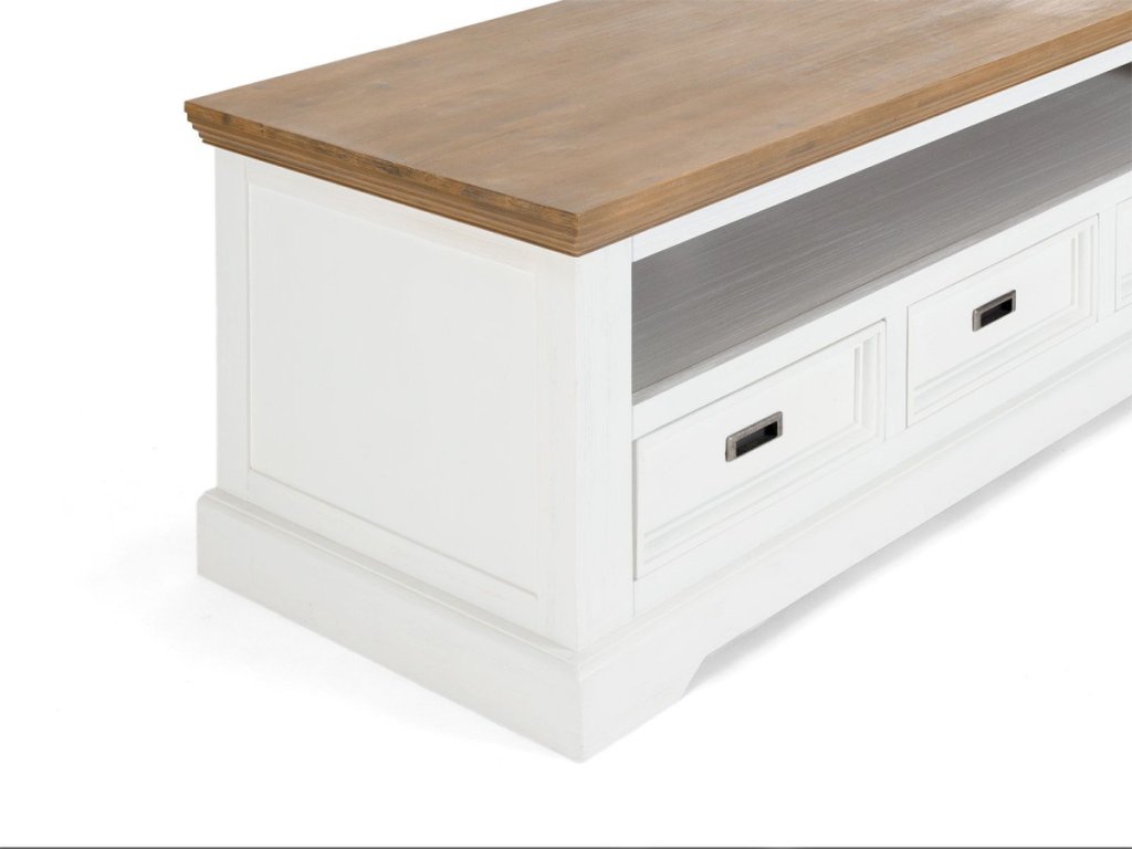 Řada Cheevre imituje styl nábytku francouzského venkova. Díky použitým barvám prosvětlý každý interiér a pomáhá, tak vytvářek pozitivní atmosféru domova. Díky své praktické konstrukci nabízí hodně úložného prostoru. Rám a sokl jsou vyrobeny z masivu akácie, povrch je upraven metodou MDF a vrchní deska je opět masivní akácie. Nábytek této řady si tak bere to nejlepší z obou světů. Robusní masivní dřevo je odolné a vydrží dlouhá léta a MDF úprava povrchu umožňuje snadné čištění a eliminuje vznik prasklin a skvrn po sucích. Podrobnosti: Nábytek pro milovníky romatického stylu a nostalgie Rozměry: š155 x v60 x h55 cm | |