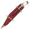 Dodává se s dřevěným pláštěm pokrytý červenou kůží a malým nožem. Ten je též vyroben z kostí a zapadá do menšího pouzdra spojeného s hlavní pochvou.