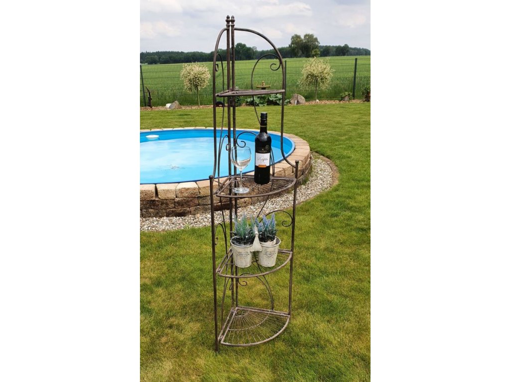 Krásný nostalgický samonosný regál s několika policemi, kam můžete vystavit různé drobnosti, ale i doplňky do koupelny nebo také květiny či zboží ve Vašem obchůdku či kavárně.