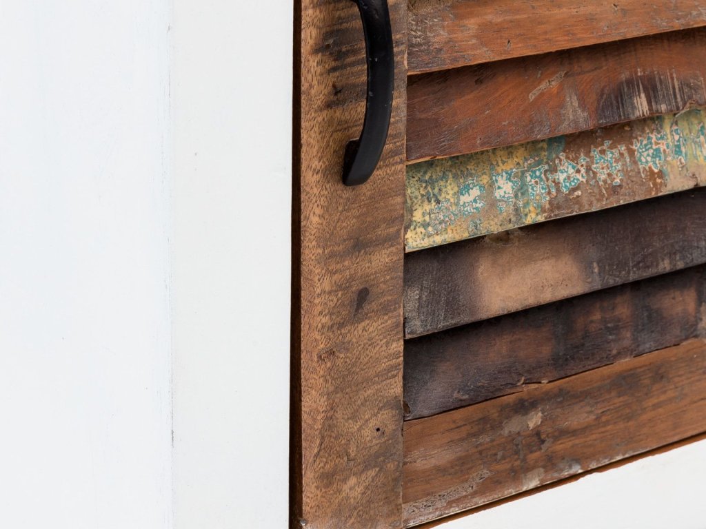 Nada nábytku Makani Wai evokuje plážové sny a vzpomínky na dovolenou v těch nejkrásnějších barvách. Zachytili jsme je a zkombinovali se světlým nábytkem Koupelnový nábytek je vyroben z recyklovaného dřeva, jako je mango, teak a akácie – a pochází převážně z oken a dveří starých indických budov. Chtěli jsme zachovat právě tento barevný aspekt a zároveň zdůraznit různé dřevěné struktury. Proto jsme odstranili některé barvy a odhalili dřevěný tón pod nimi. V kombinaci s bílým korpusem jsme vytvořili sérii, kterou bychom rádi viděli v mnoha koupelnách jako „malý suvenýr“ z jižní polokoule. Touto sadou chceme znovu ukázat, že náš koupelnový nábytek je skutečně ručně vyráběný. Každý kus je jedinečný, má své vlastní charakteristické barevné schéma. A každý jedinečný kus má svůj vlastní příběh Funkční a stylováSkříňka pod umyvadlo poskytuje v koupelně užitečný úložný prostor, kde si můžete uložit ručníky, kosmetiku a další potřeby. Druhá skříňka pod umyvadlo vedle skříňky s poličkou ve stejné výšce jako umyvadlo krásně zapadá do celkového vzhledu. Podobně jako komoda stojí skříňka pod umyvadlo na podlaze. „Kartáč na vlasy, zrcátko na líčení nebo holení, ručník pro hosty – vše najde své místo na poličce skříňky pod umyvadlo, kde je snadné na to dosáhnout.“ Podrobnosti:Rozměry za dvířky ŠxVxH: 36x44x36,5 cm