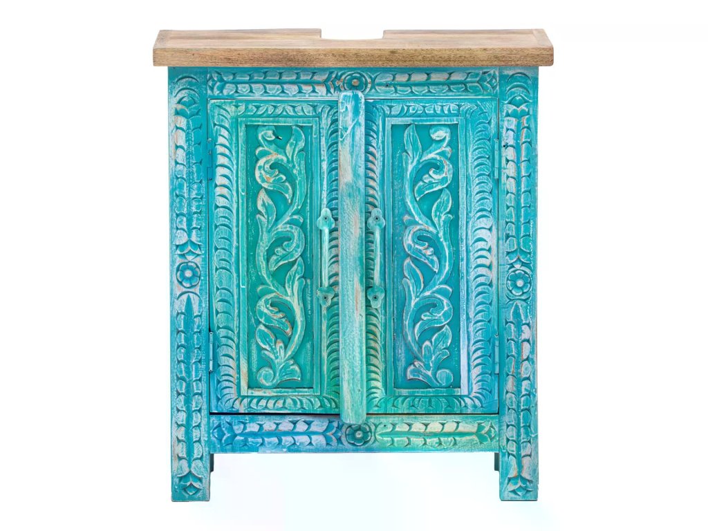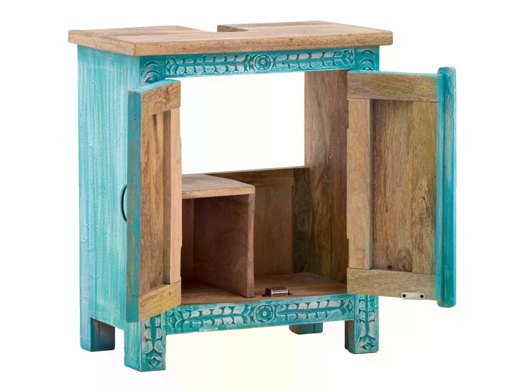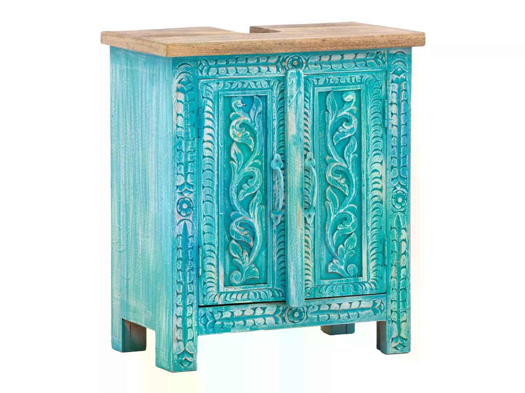 Přineste si domů StředomoříS touto koupelnovou sadou z masivního mangového dřeva si do svého domova vnesete nejen kvalitu, ale také pocit léta, slunce a moře. Objevte ji hned teď, zkombinujte ji a proměňte svou koupelnu v místo, kde budete rádi trávit čas. Masivní dřevo, do kterého se zamilujeteVšechny kusy z této řady jsou vyrobeny z masivního mangového dřeva . Povrch je opatřen matným lakem, který nejenže vypadá elegantně, ale také chrání dřevo před vlhkostí a prachem. Jemné, vyřezávané detaily dělají z každého kusu skutečný poutač – jedinečný a plný charakteru. Perfektně se vejde pod váš dřezDíky svým kompaktním rozměrům 52x60x30 cm je skříňka pod umyvadlo ideální do menších koupelen nebo toalet pro hosty. Dvoje dvířka se snadno otevírají a odhalují interiér – stylový a praktický zároveň.