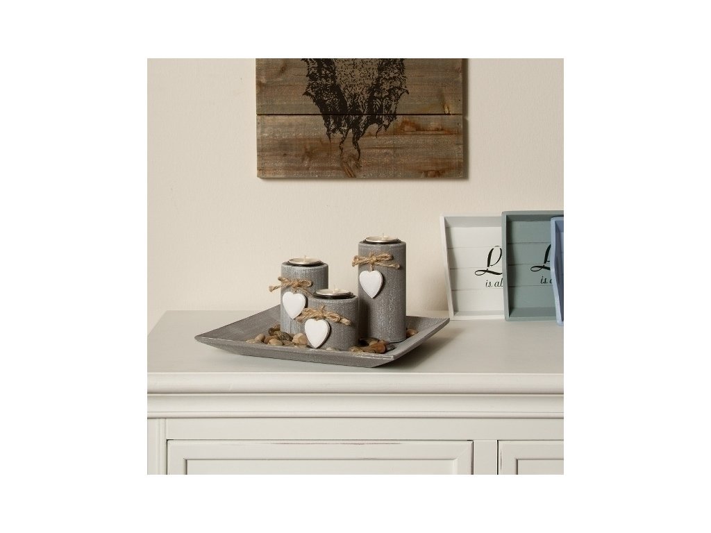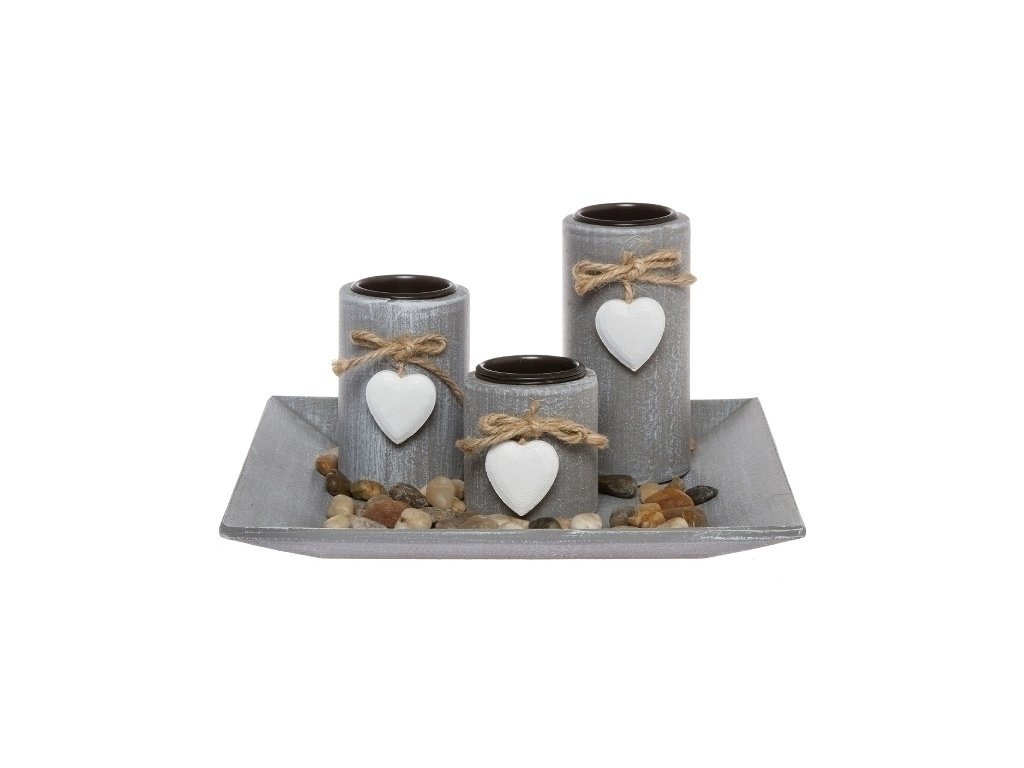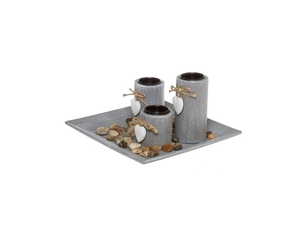 Podnos a svícen na čajové svíčky mají "kamenný" design